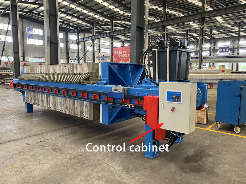 There are multiple buttons on the filter press control box, including a power switch, emergency stop buttons, etc. The automatic control system can use the hold button to complete the manual automatic control switching action. When the oil level in the tank is at the normal position, the filter press can be closed only after it is ready. During the closing process, the main and auxiliary hydraulic cylinders and electric valves act cooperatively with each other. After reaching a certain position, the closing limit switch is triggered, and the filter presses. The machine stops shutting down.